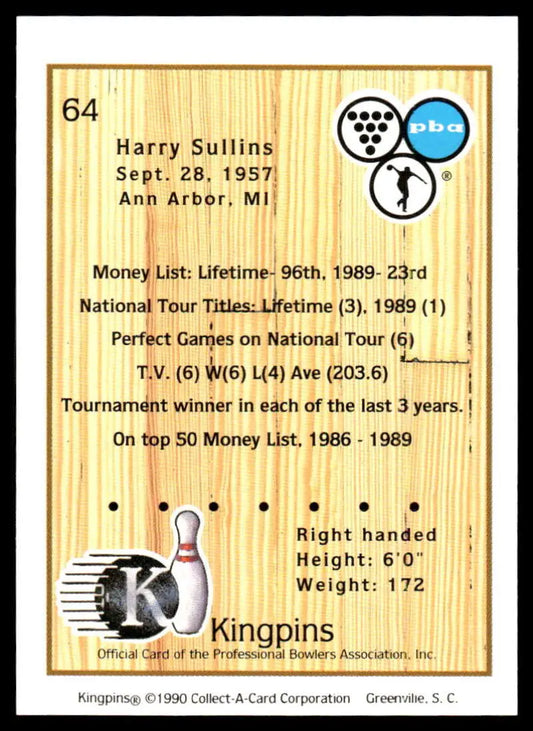 1990 Kingpins #64 Harry Sullins NM-MT PBA Bowling Card