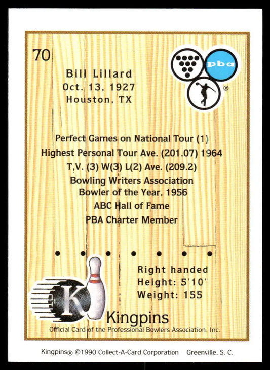 1990 Kingpins #70 Bill Lillard NM-MT PBA Bowling Card