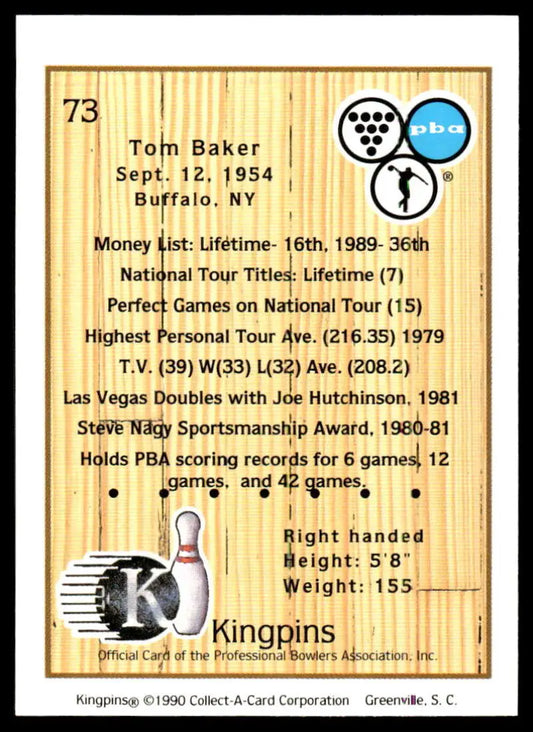 1990 Kingpins #73 Tom Baker NM-MT PBA Bowling Card