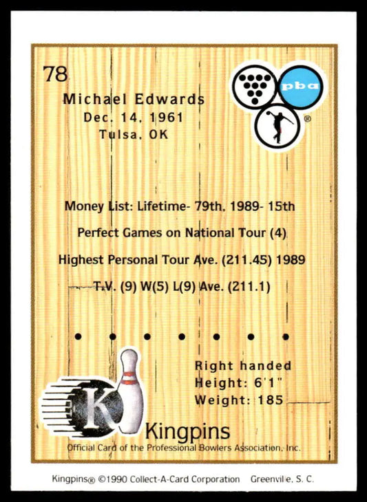 1990 Kingpins #78 Michael Edwards NM-MT PBA Bowling Card