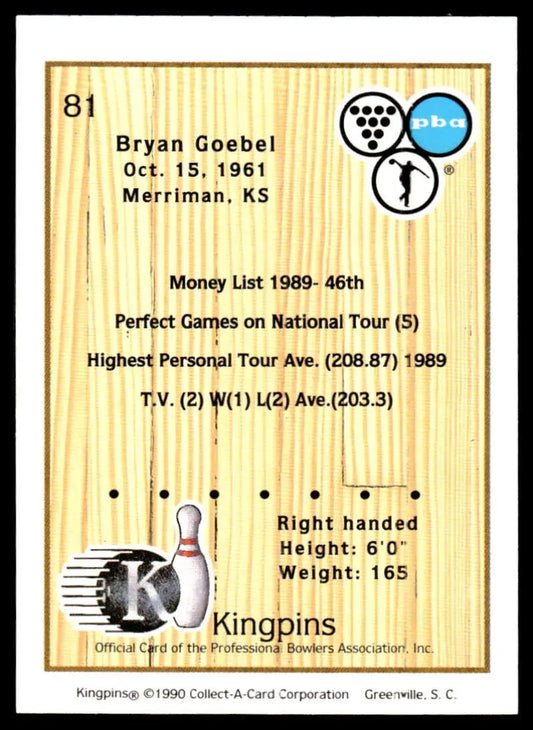 1990 Kingpins #81 Bryan Goebel NM-MT PBA Bowling Card