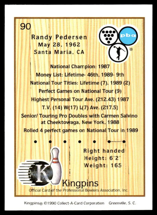 1990 Kingpins #90 Randy Pedersen NM-MT PBA Bowling Card