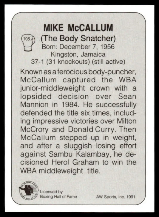 1991 All World #108 Mike McCallum NM-MT Boxing Card