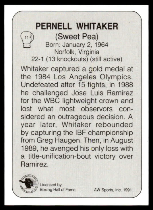 1991 All World #11 Pernell Whitaker NM-MT Boxing Card
