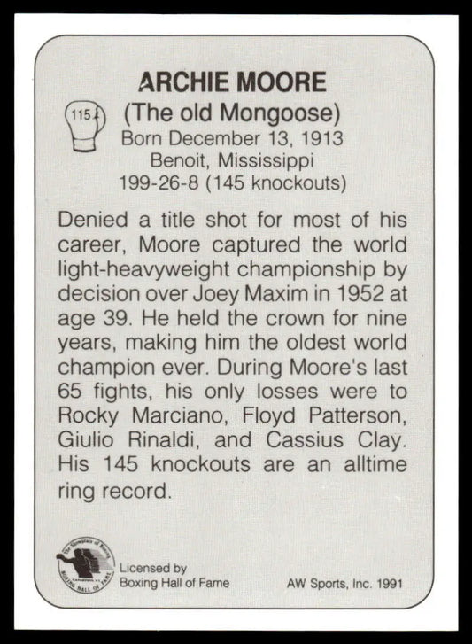 1991 All World #115 Archie Moore NM-MT Boxing Card