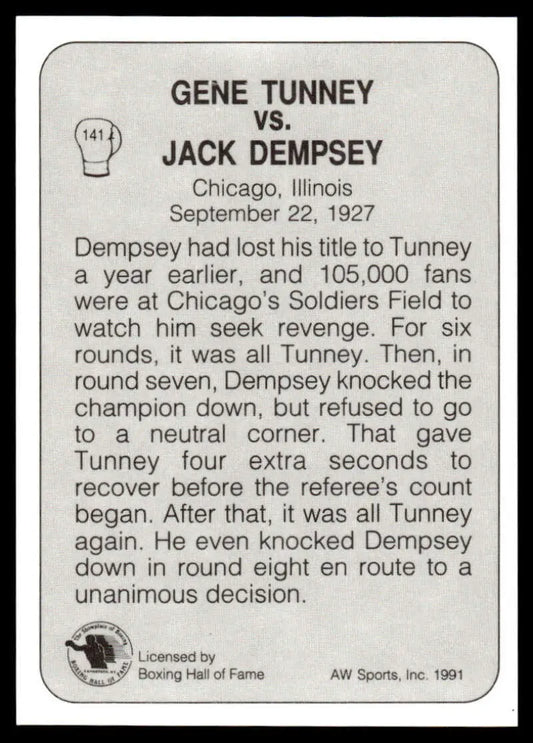 1991 All World #141 Tunney Vs. Dempsey II NM-MT Boxing Card
