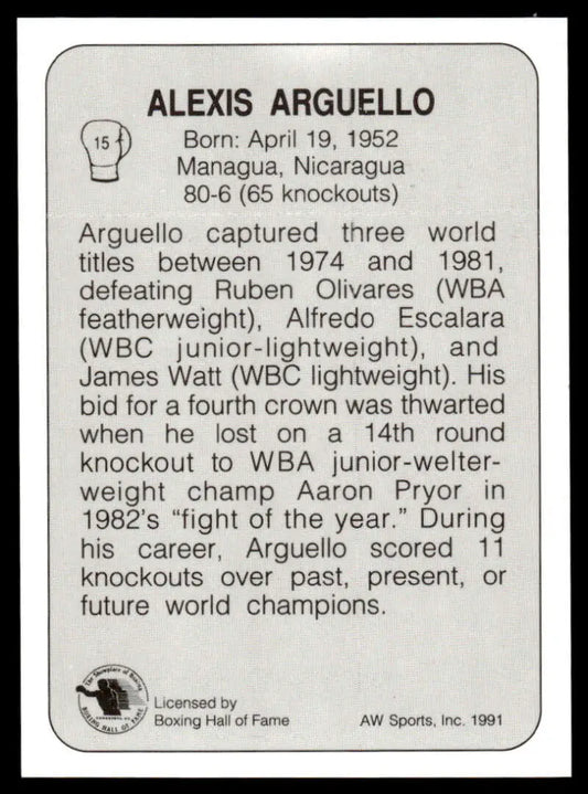 1991 All World #15 Alexis Arguello NM-MT Boxing Card