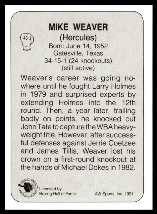 1991 All World #43 Mike Weaver NM-MT Boxing Card