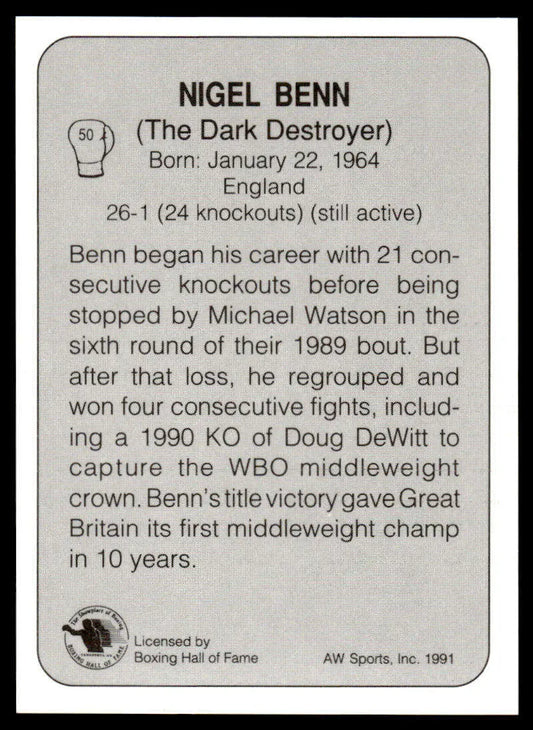 1991 All World #50 Nigel Benn NM-MT Boxing Card