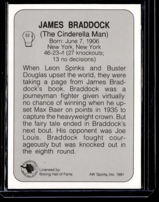 1991 All World #53 James Braddock NM-MT Boxing Card