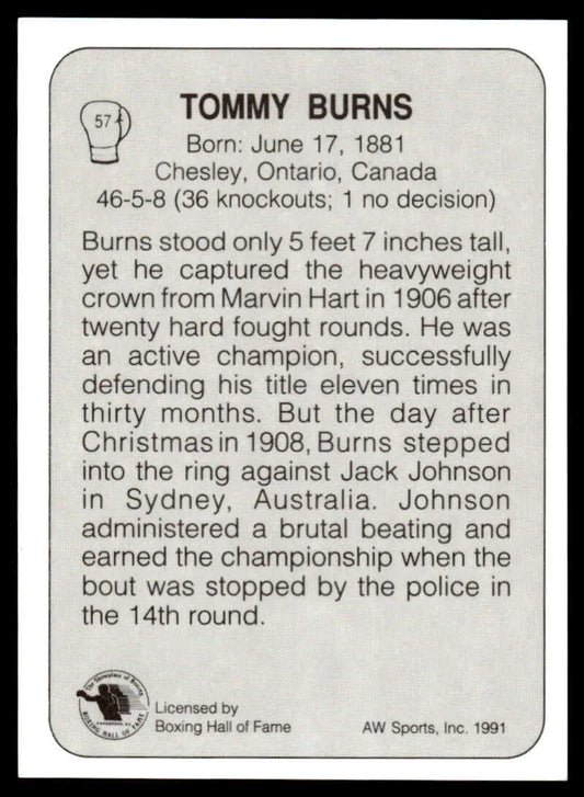 1991 All World #57 Tommy Burns NM-MT Boxing Card