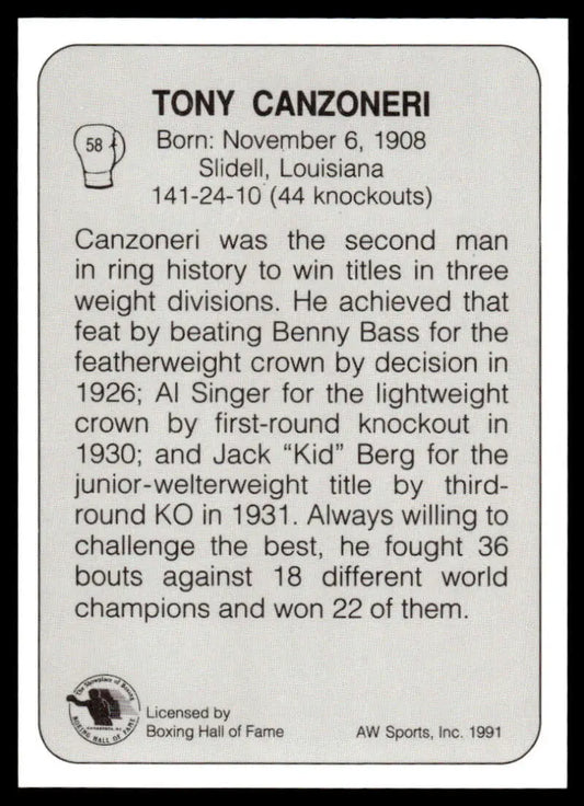 1991 All World #58 Tony Canzoneri NM-MT Boxing Card