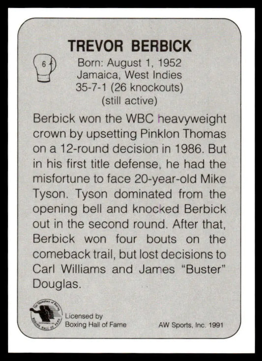 1991 All World #6 Trevor Berbick NM-MT Boxing Card