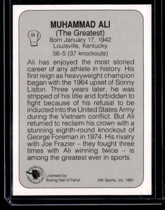1991 All World #69 Muhammad Ali NM-MT Boxing Card