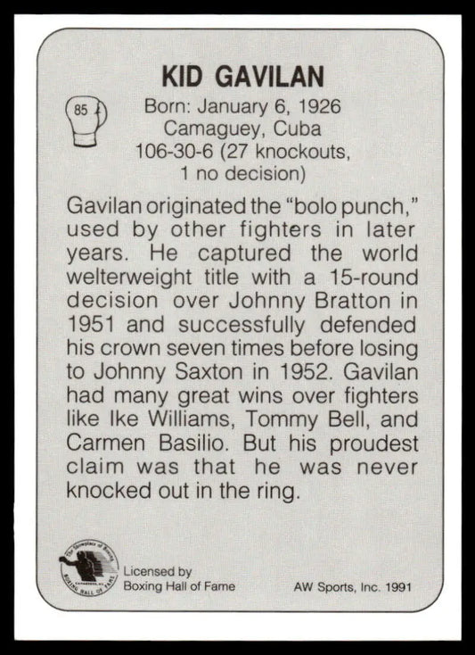 1991 All World #85 Kid Gavilan NM-MT Boxing Card