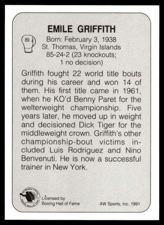 1991 All World #89 Emile Griffith NM-MT Boxing Card