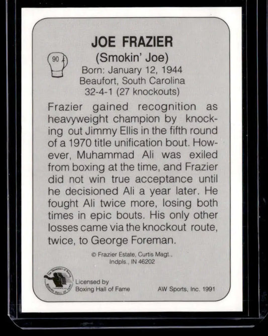 1991 All World #90 Joe Frazier NM-MT Boxing Card