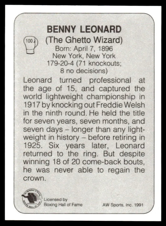 1991 All World #100 Benny Leonard NM-MT Boxing Card
