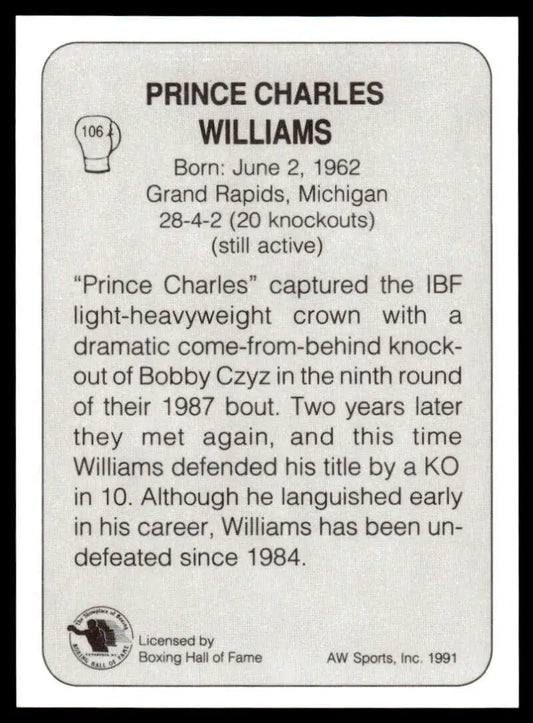 1991 All World #106 Prince Charles Williams NM-MT Boxing Card