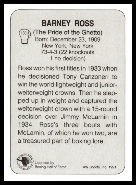 1991 All World #130 Barney Ross NM-MT Boxing Card