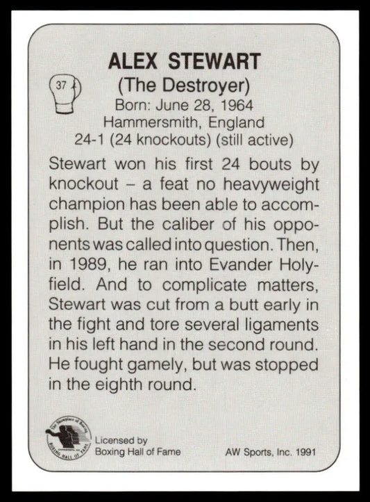 1991 All World #37 Alex Stewart NM-MT Boxing Card