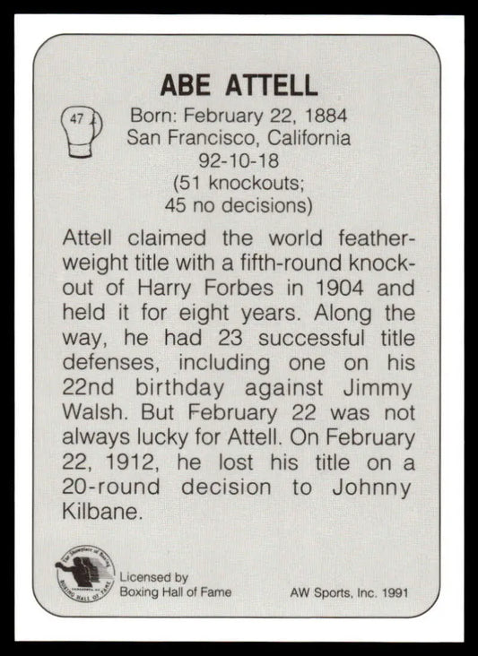 1991 All World #47 Abe Attell NM-MT Boxing Card