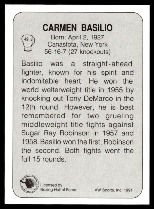 1991 All World #49 Carmen Basilio NM-MT Boxing Card