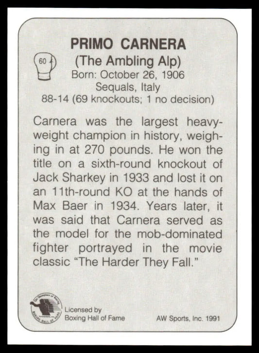 1991 All World #60 Primo Carnera NM-MT Boxing Card