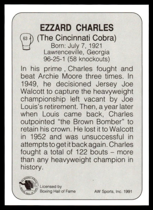 1991 All World #63 Ezzard Charles NM-MT Boxing Card