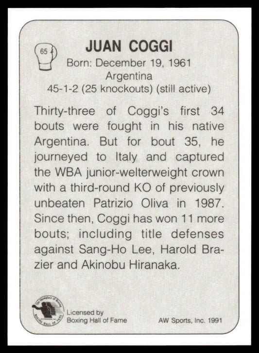 1991 All World #65 Juan Coggi NM-MT Boxing Card