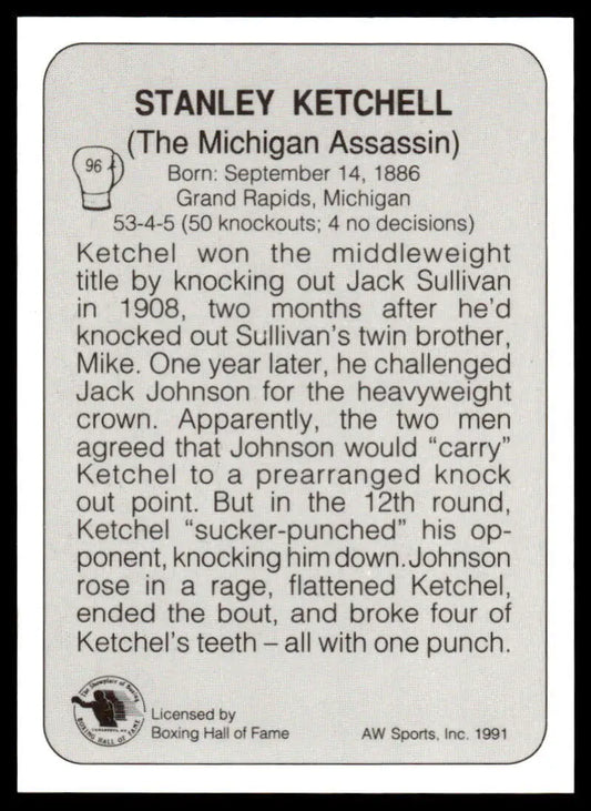 1991 All World #96 Stanley Ketchel NM-MT Boxing Card