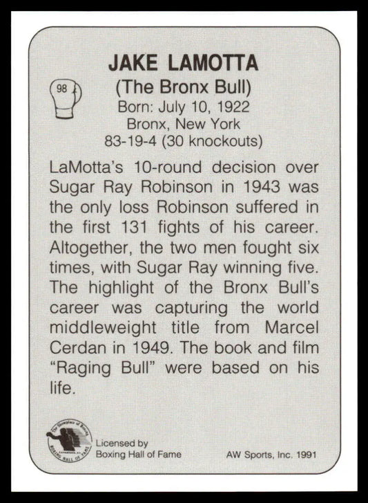 1991 All World #98 Jake Lamotta NM-MT Boxing Card
