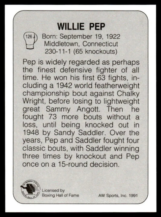 1991 All World #126 Willie Pep NM-MT Boxing Card