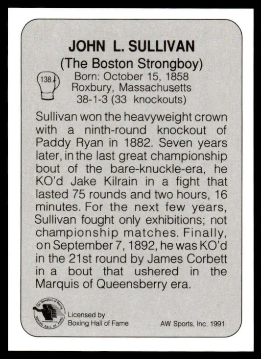 1991 All World #138 John Sullivan NM-MT Boxing Card