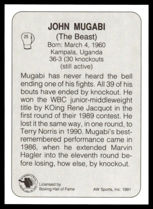 1991 All World #25 John Mugabi NM-MT Boxing Card