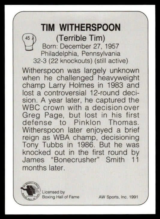 1991 All World #45 Tim Witherspoon NM-MT Boxing Card