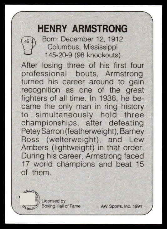 1991 All World #46 Henry Armstrong NM-MT Boxing Card