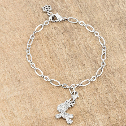 Rudy 0.25ct CZ Rhodium Reindeer Charm Bracelet