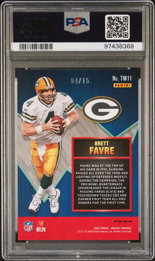 Brett Favre 2020 Panini Mosaic Touchdown Masters Blue Flourescent #4/15 PSA 10 Gem Mint