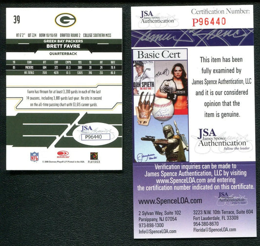 Brett Favre Auto JSA Authentic 2006 Leaf Rookies Stars #39 COA Green Bay Packers