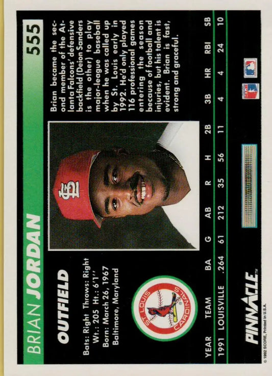 1992 Pinnacle #555 Brian Jordan EX RC Rookie St. Louis Cardinals Baseball Card