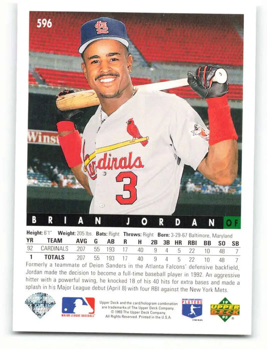 1993 Upper Deck #596 Brian Jordan VG St. Louis Cardinals Baseball Card