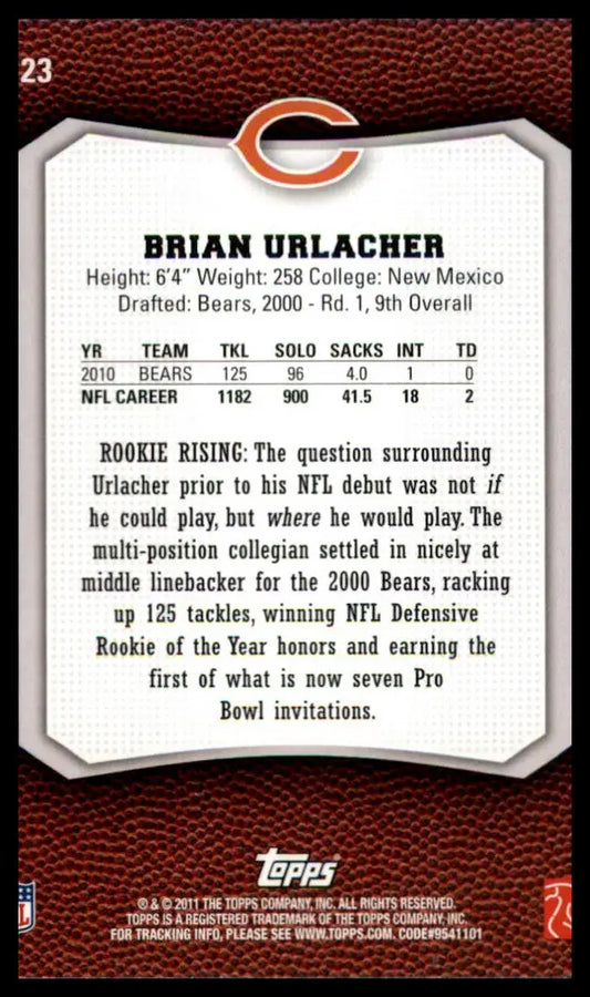 Brian Urlacher 2011 Topps Rising Rookies #23 Chicago Bears