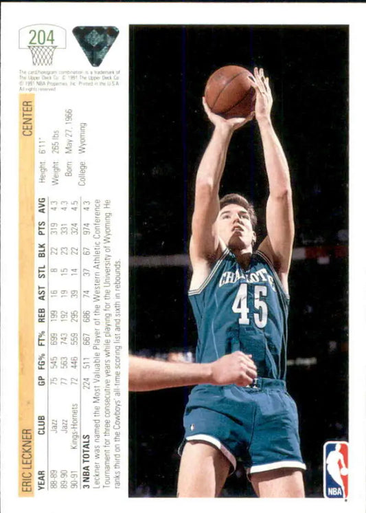 1991-92 Upper Deck #204 Eric Leckner NM-MT Charlotte Hornets Basketball Card