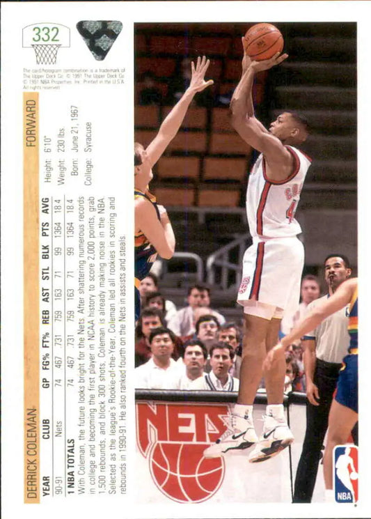 1991-92 Upper Deck #332 Derrick Coleman NM-MT New Jersey Nets Basketball Card