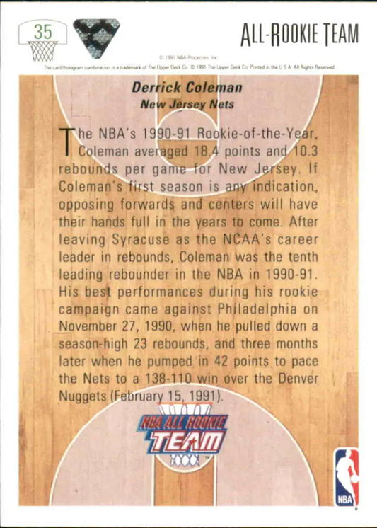 1991-92 Upper Deck #35 Derrick Coleman ART NM-MT New Jersey Nets Basketball Card