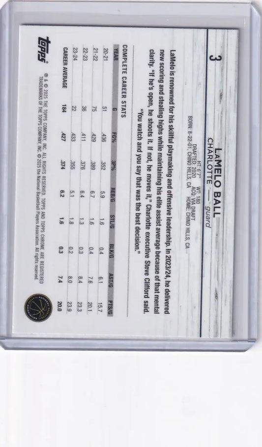 2024-25 Topps Chrome Negative Refractor #3 LaMelo Ball - Charlotte Hornets
