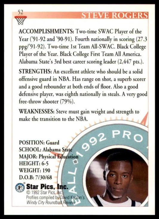 Steve Rogers 1992 Star Pics #52 Alabama State Hornets
