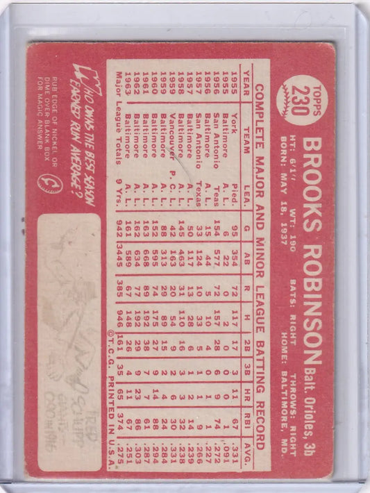 1964 Topps Baseball #230 Brooks Robinson - Baltimore Orioles