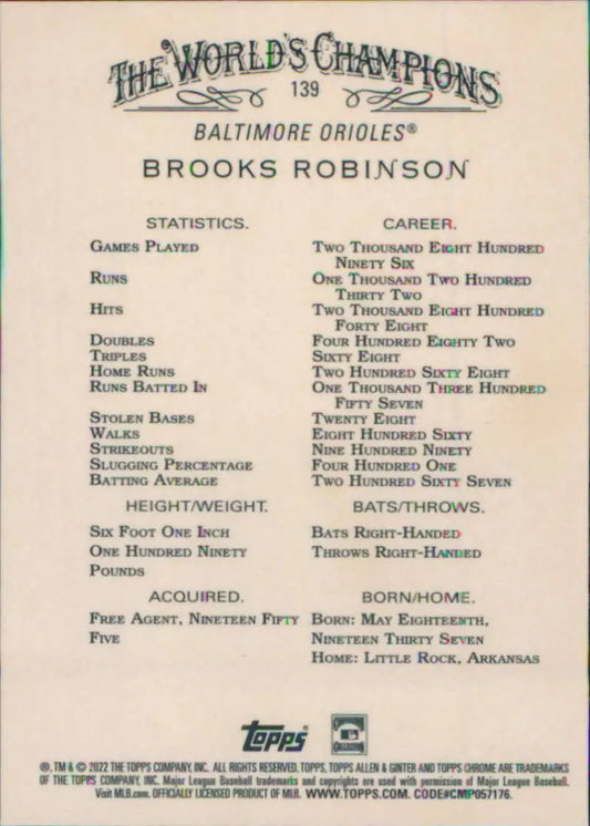 2022 Topps Allen and Ginter Chrome #139 Brooks Robinson NM-MT Baltimore Orioles Baseball Card